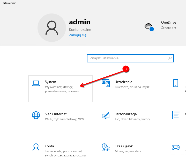 Krok 3 (Screen 3) — Otwórz dział „System”