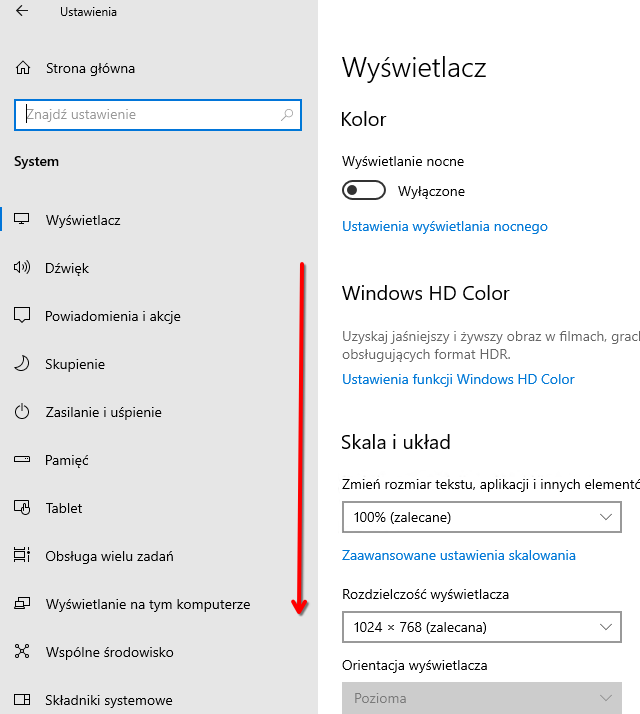 Teraz przewijaj tę lewą listę w dół (kółko myszy / scroll na touchpadzie).