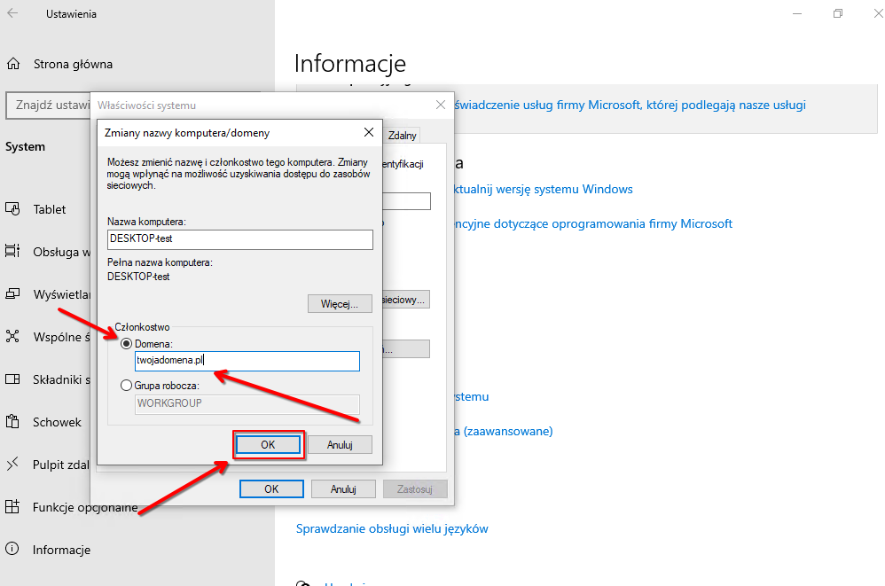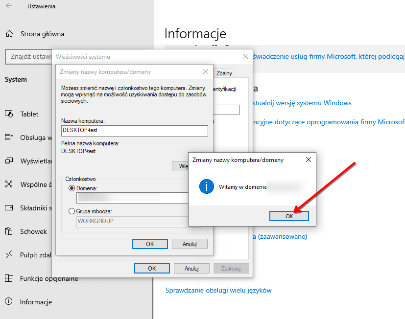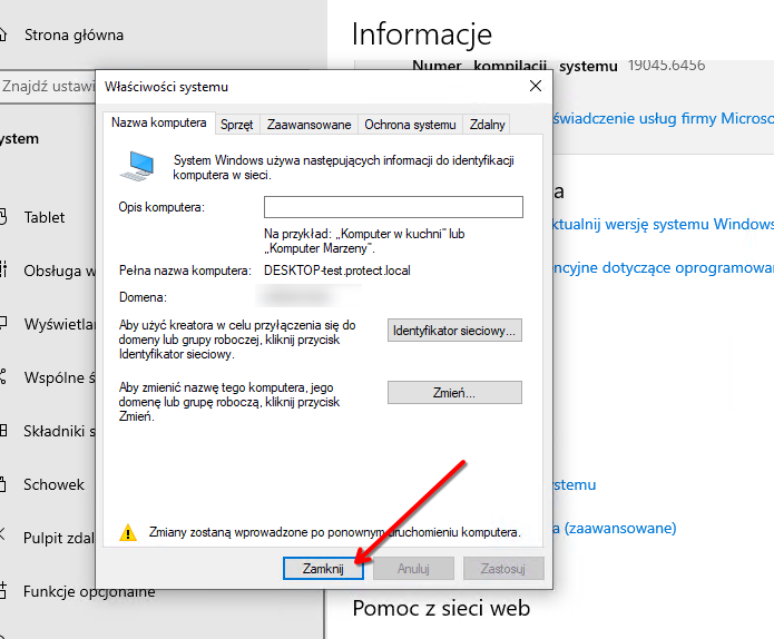 ✅ Nazwa domeny widoczna w Właściwości systemu