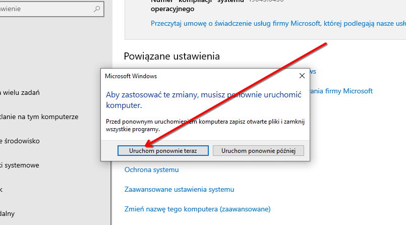 ponowne uruchomienie komputera w celu zastosowania zmian.