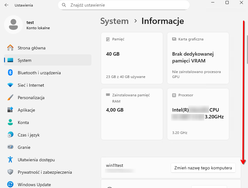 Uwaga: to jest główny punkt wejścia do informacji o komputerze w Windows 11.