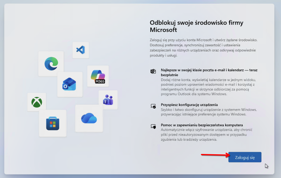 możliwe będzie wykonanie kolejnej czynności wymaganej do obejścia logowania do konta Microsoft.