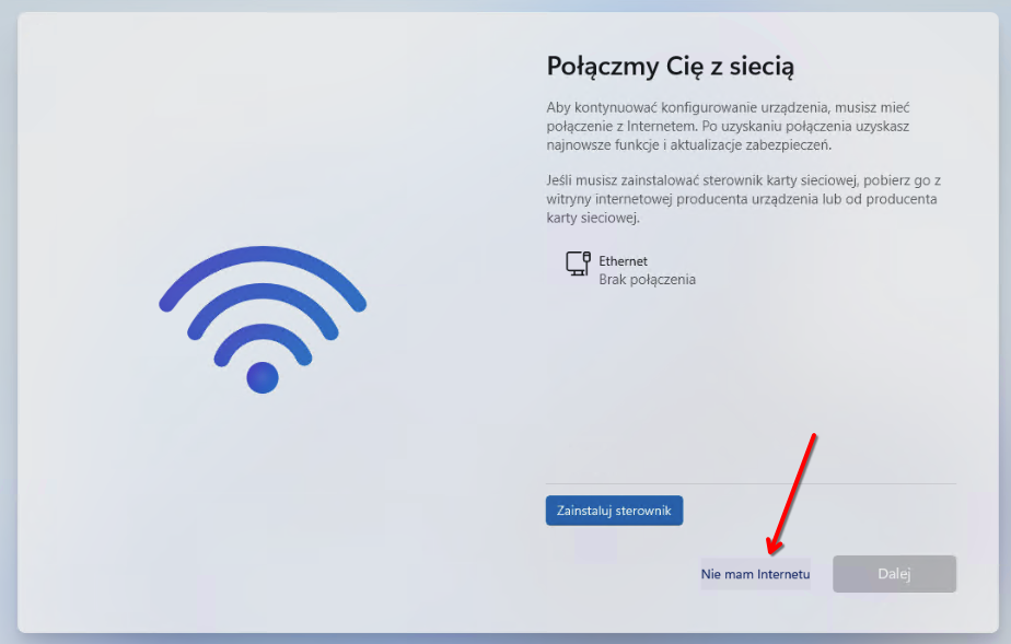 Jeżeli nie widzisz przycisku „Nie mam Internetu”: