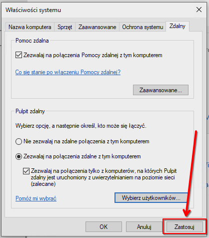 Konfiguracja Pulpitu zdalnego (RDP) w Windows 10