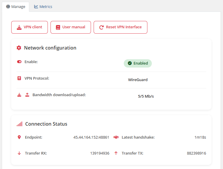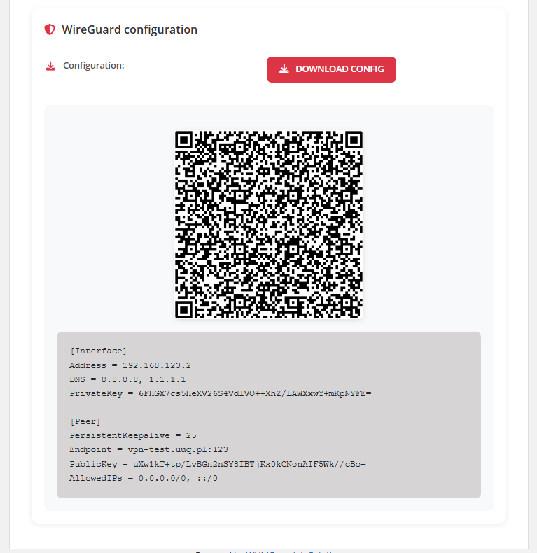 - Button to download WireGuard client configuration